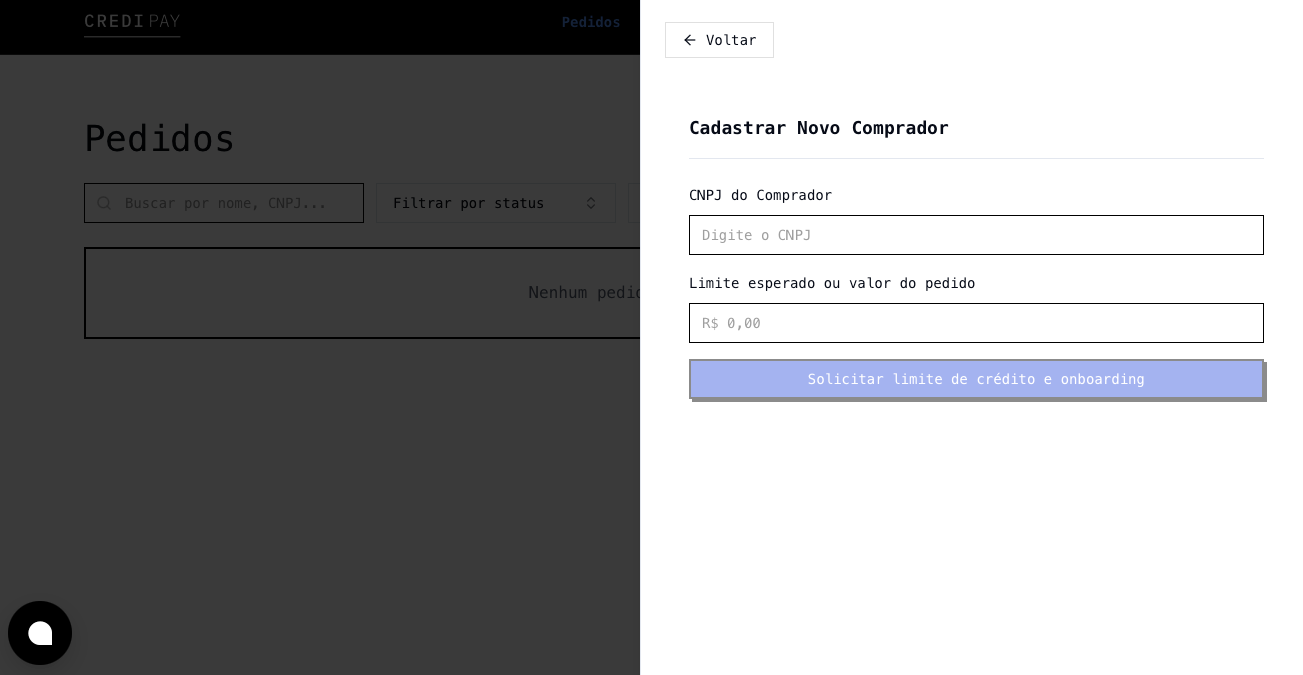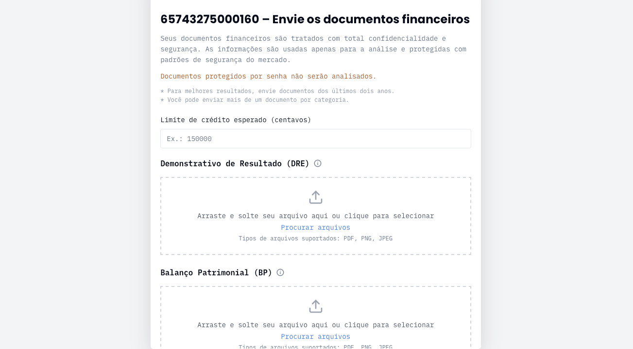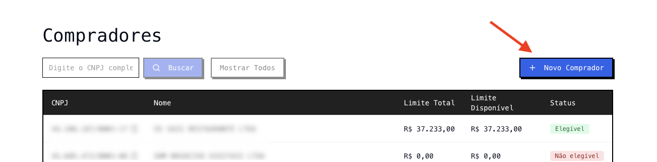 - Insira os dados do CNPJ e Limite esperado para o comprador.
