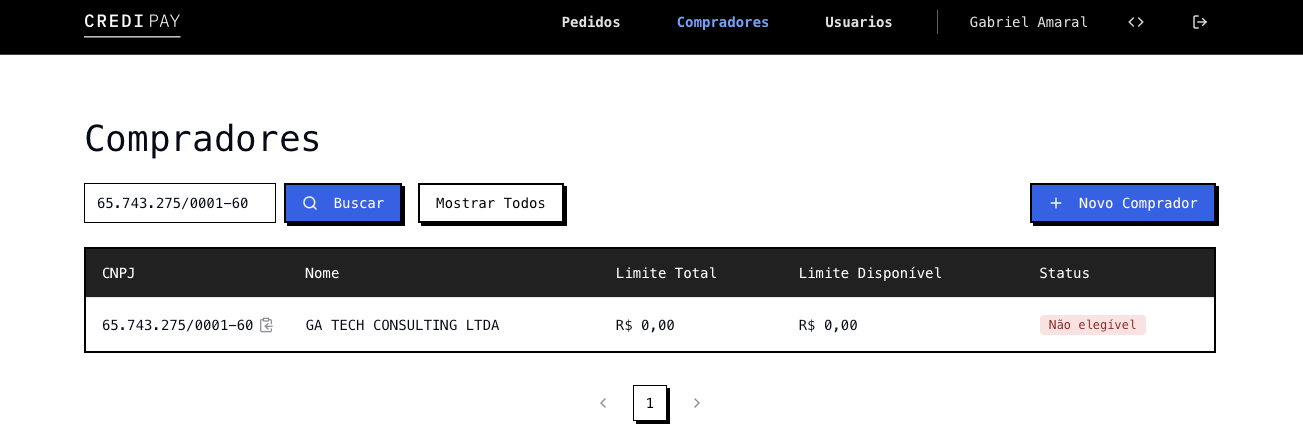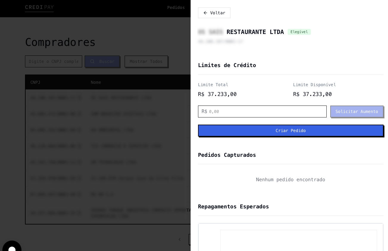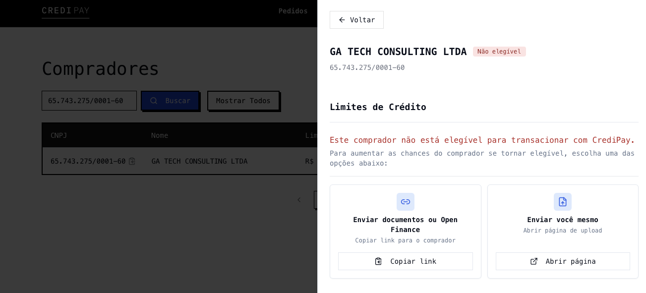 - Caso o comprador seja Elegível, ao clicar no comprador terá as informações de Limites e Pedidos.