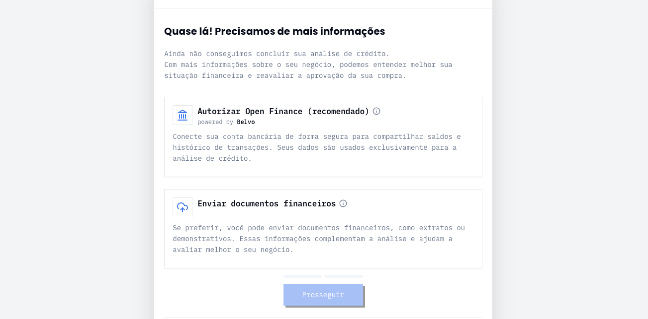4.1 Ao clicar em Copiar Link, uma URL será copiada e pode ser encaminhada para o comprador inserir Documentos Financeiros ou autorizar o Open Finance.