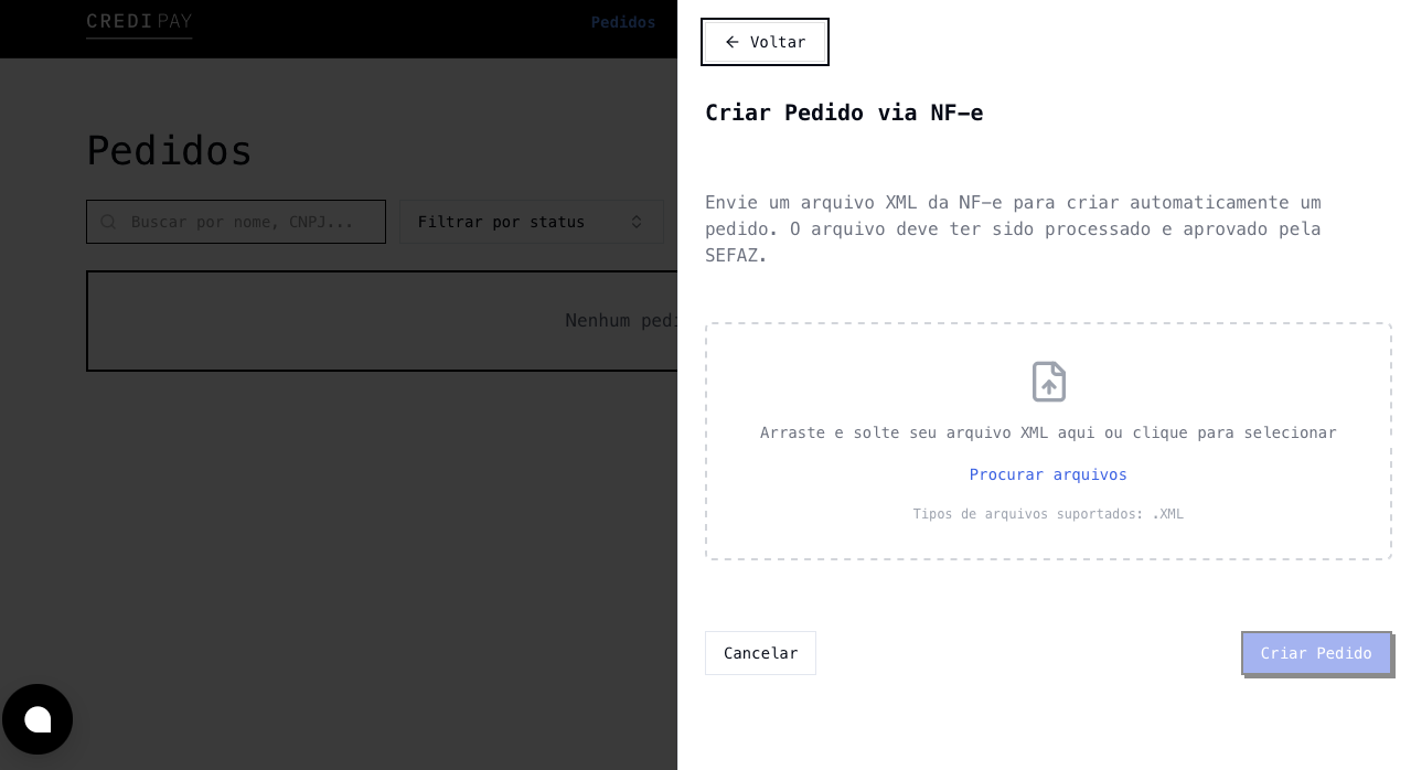 Se você já tiver o arquivo XML da Nota Fiscal, pode enviar direto e o sistema cria o pedido automaticamente.