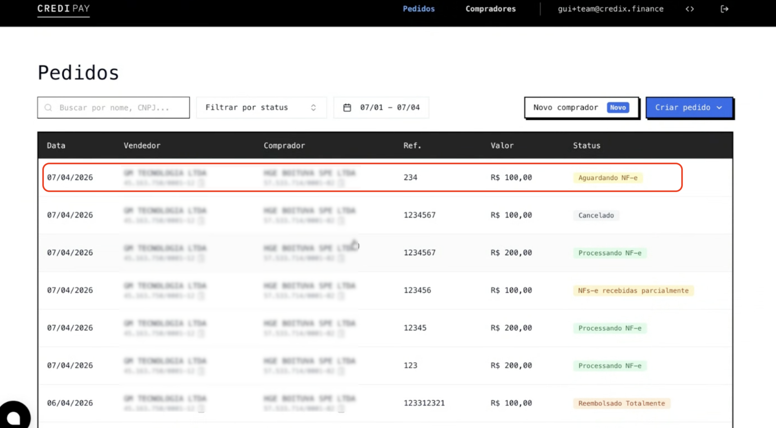 - Acesse o Pedido: Na lista de pedidos, localize e clique sobre o pedido desejado (ele deve estar com o status Aguardando NF-e).